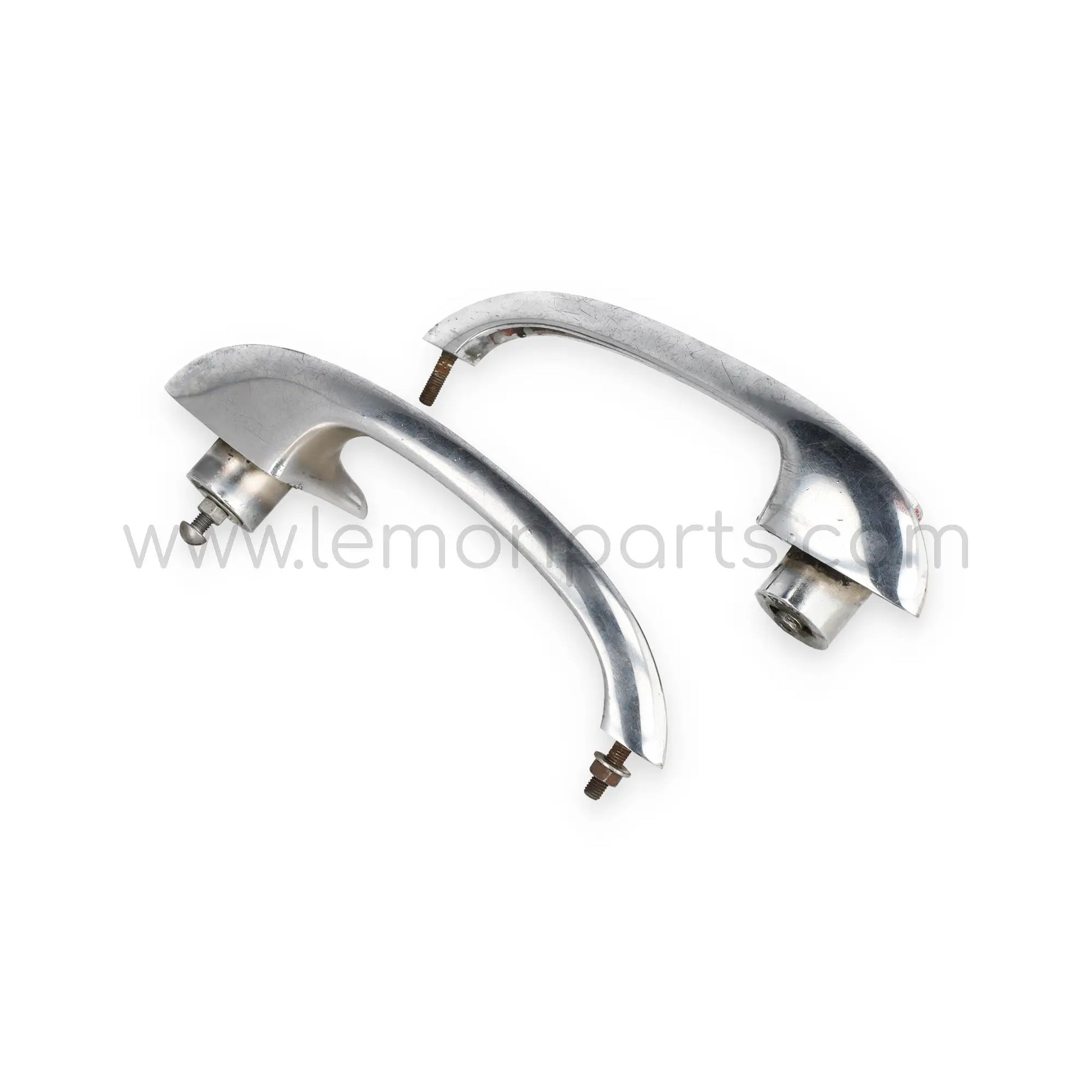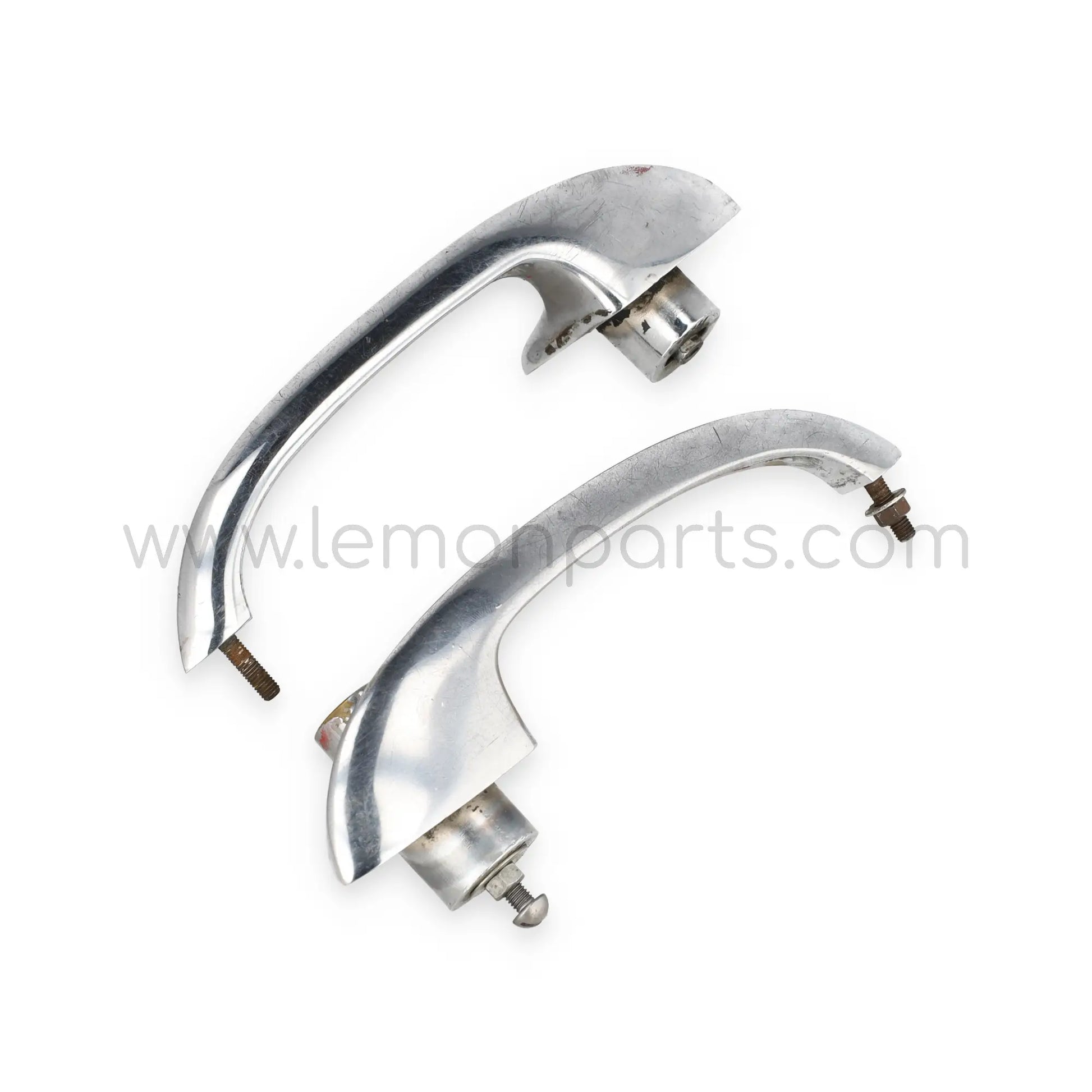 Original door handles set from SAFE. The driver side ( Left side ) has a lock, but missing the keys. Used on Ferrari 250 SWB, Pininfarina Coupe, California, Lusso and others.
