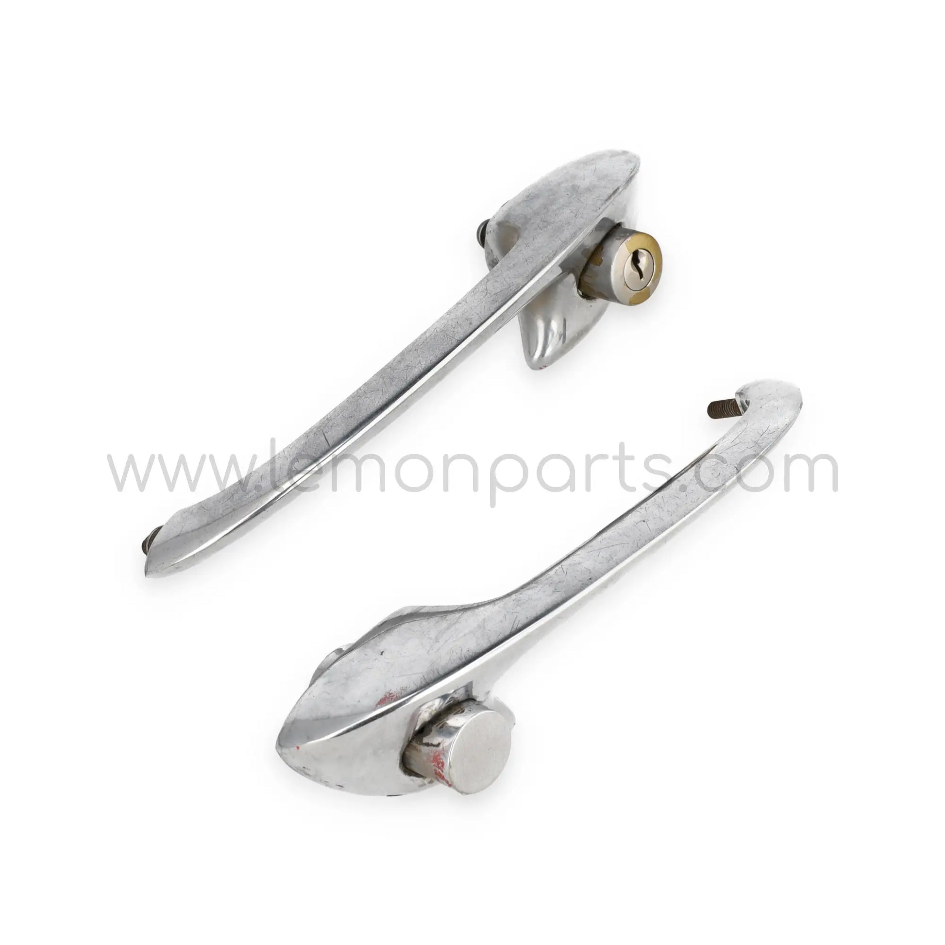 Please note that this is the original 60's period set with smaller key hole, but missing the key. The passenger side handle is missing some parts within.